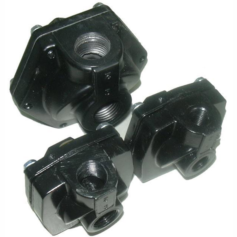 快速排氣閥是與氣缸配套使用的一種快速排氣裝置,顧名思義它就是將氣缸內的空氣能快速排出的一種原件。克萊德快速排氣閥A1084與圓頂閥氣缸進行配套使用,它采用螺紋連接方便安裝。其外部殼體為球墨鑄鐵QT450材質,內部有專用膜片進行配套組裝,其使用密封性已在漫長的現場使用中得到了充分的肯定。本快速排該閥一般安裝在靠近密封圈和氣缸的管路上,使密封圈和氣缸的反向空氣直接迅速排出,達到保護密封圈和氣缸快速換向的目的,適用於要求氣缸快速運動的場合。