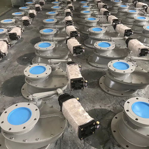 氣動旋轉閥通常也稱之為擺動閥、平移閥,它的密封形式采用硬密封。它是由一個旋轉氣缸帶動閥門軸承,閥板是通過花鍵與閥門軸承所固定,閥板在氣缸執行器運動下動作。氣缸上裝有磁敏開關、行程開關或者接近開關來對閥門位置進行反饋,反饋的信號直接傳送給PLC控製櫃。